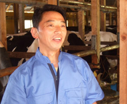 お父さんが農業のかたわらで始め、現在は臼井さんと奥さんで成牛25頭、育成牛5頭を飼育する臼井牧場。家の裏の高台にある牛舎は、臼井さんが知り合いの土建屋さんと二人で10ヶ月かけて手作りしたものだという。新しい牛舎は高台にあるせいか風通しもよく、掃除も行き届いていて気持ちがいい。