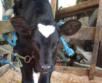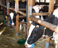 牛舎の飼槽の滑りが良いのでうかがってみると「暑さ2.5cmの御影石を使っています。コンクリートにすると牛が舐めて磨り減ったり、脚の当たる部分がえぐれたりしますから」と臼井さん。"水滴石をもうがつ"という言葉があるが、へぇー牛の舌ってコンクリートを削っちゃうんだー!びっくり!